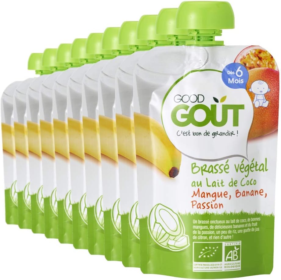 Good Goût - BIO - Brassé Lait de Coco Mangue Banane Passion Bio Dès 6 Mois - Pack de 10