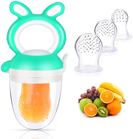 Oladwolf D'alimentation Pour Bébé Tétine à Fruit, Silicone Grignoteuse Bébé 3 Mois, Tetine Fruits Bebe+3 Tétines en Sans Bpa en 3 Tailles, Sucette Pour Fruit Bebe (Vert)