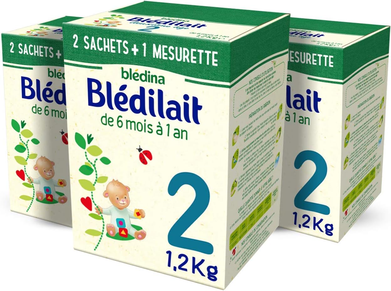Blédina Blédilait 2ème âge - Lait pour Nourrissons en poudre, dès les 6 mois et jusqu'aux 12 mois de bébé - Pack de 3 Boîtes de 1,2 Kg