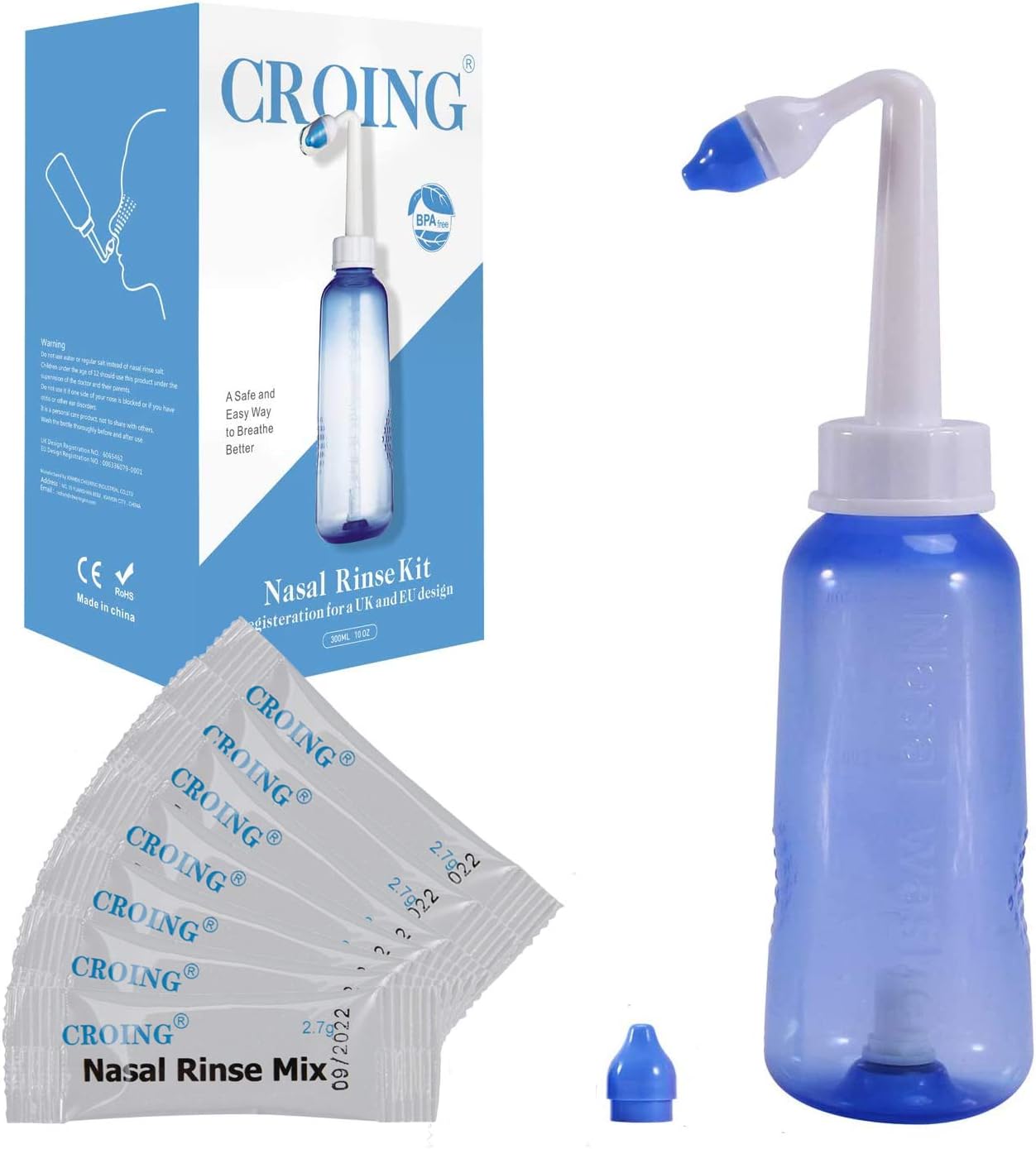 CROING -300ml Bouteille + 80 Sachets Sel Nasal - Kit Lavage de Nez/Sinus Rinse Kit/Kit de Rinçage des Sinus/Lavage Nez/Irrigation Nasale/Neti Pot - Douche Nasale