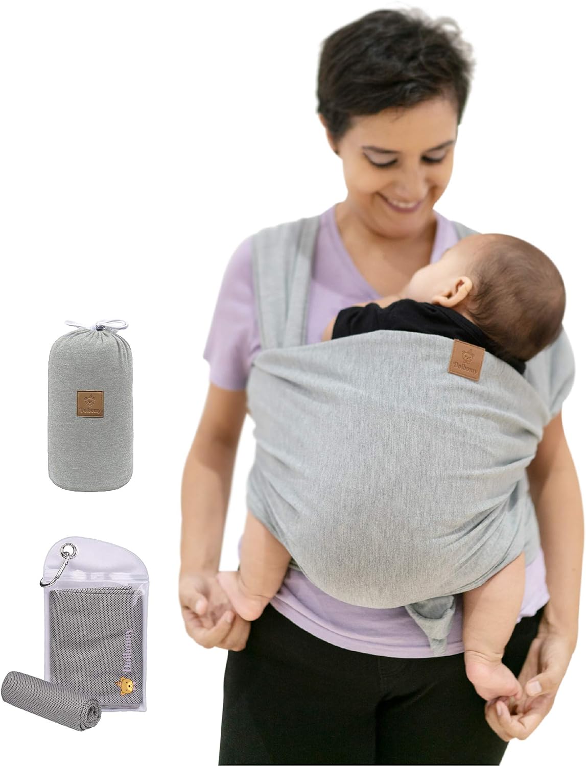 Echarpe de Portage Bebe Dolbomy - Porte Bébé - Écharpe Coton Elastique jusqu'à 14 kg pour Femme et Homme - Cadeau Naissance pour Enfant Nouveau-Né - Inclus Manuel en Français et Sac de Rangement