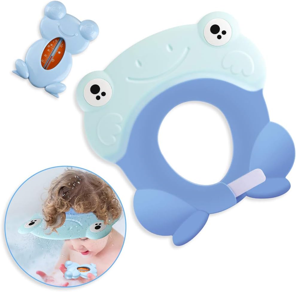 Lictin Visière de Bain - Chapeau Douche Bébé Multifonction 3 en 1 Silicone Casquette de Bain Enfant, Shampoing Chapeau Protégez Yeux et Oreilles des Enfants 1 à 8 ans (Avec un Thermomètre Bain Bébé)