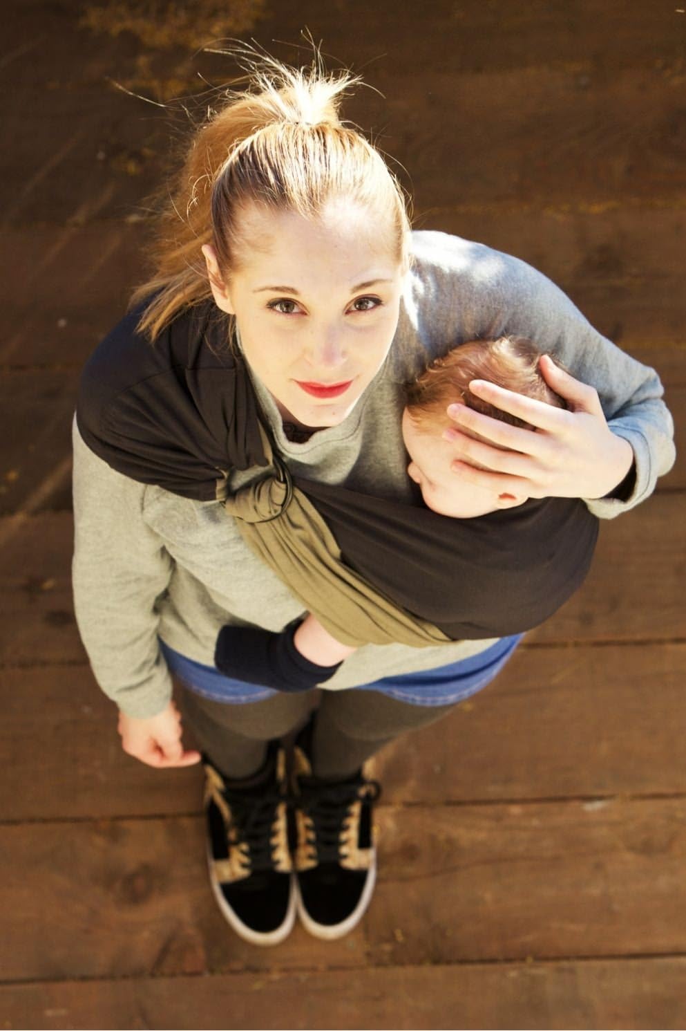 Porte-bébé sans nœud, simple, rapide, léger et aéré.