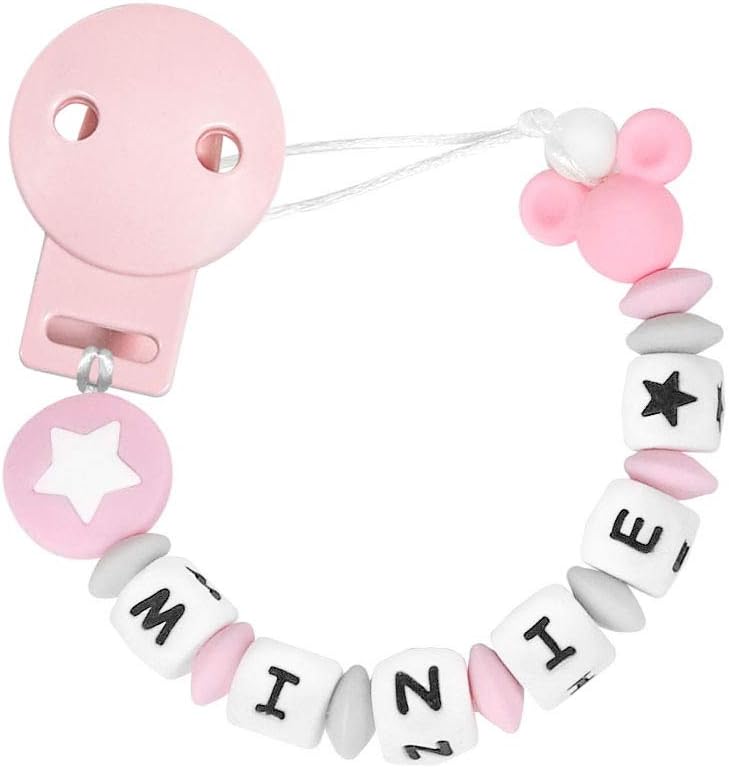 RUBY -Attache Sucette Personnalisée pour bébé, clip en silicone antibactérienne et clip en plastique. (Pastel Rose)